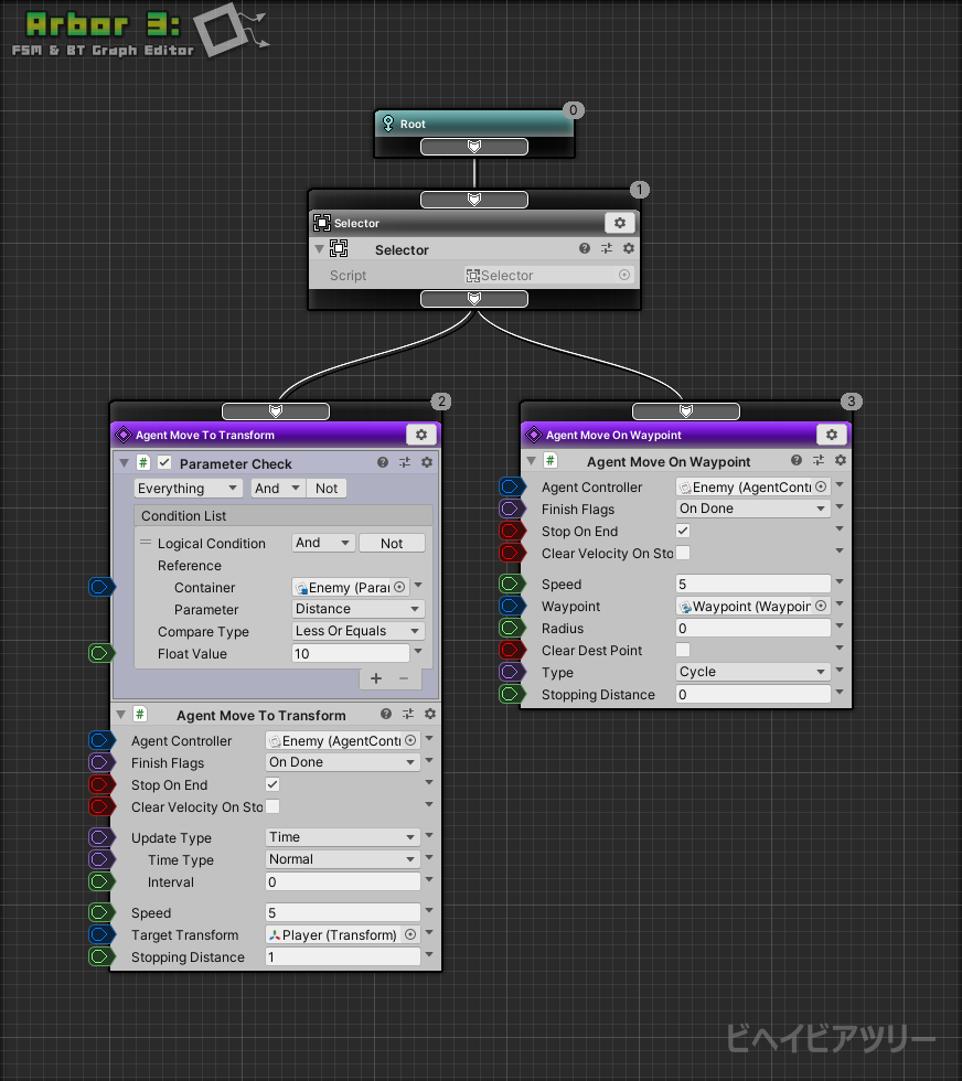Temporarily assembling with Arbor's Behaviour Tree will be as follows.