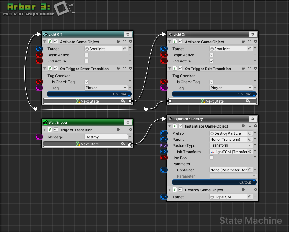 It is a simple graph editor asset that allows you to write scripts according to the behavior you want to create.
