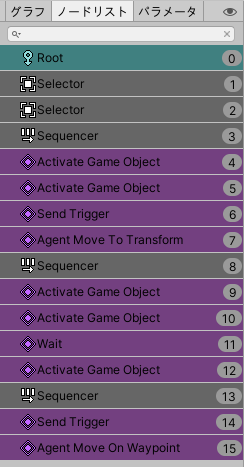 グラフに配置しているノードのリストが表示されます。 (表示されるノードは各グラフの状態にかかわるノードのみ)