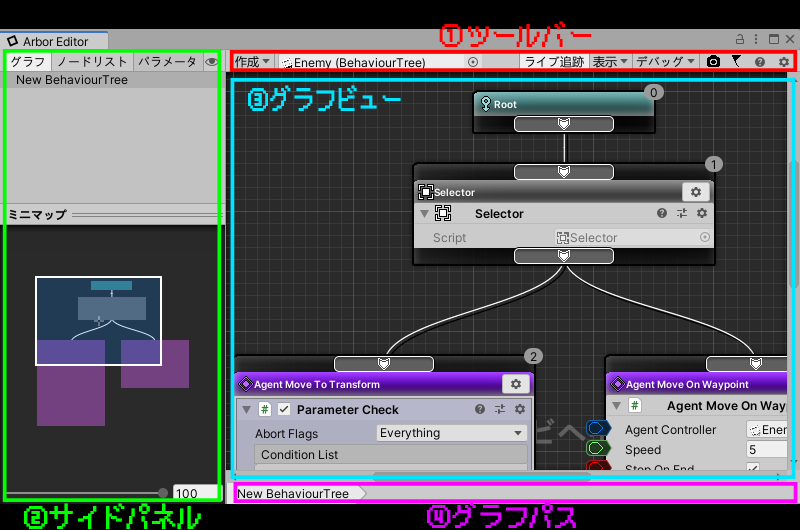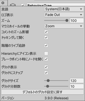 ドッキングして開く ArborEditorウィンドウを開くときのドッキングの切り替え