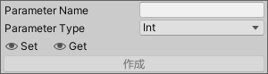 - 引数作成ウィンドウにてパラメータ名やタイプなどを記入し作成。
