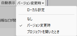 | プロジェクトを開いたとき | プロジェクトを開くたびにウィンドウが表示されます。 |