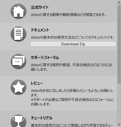 | バージョン変更時 | Arborを更新した際にウィンドウが表示されます。 |